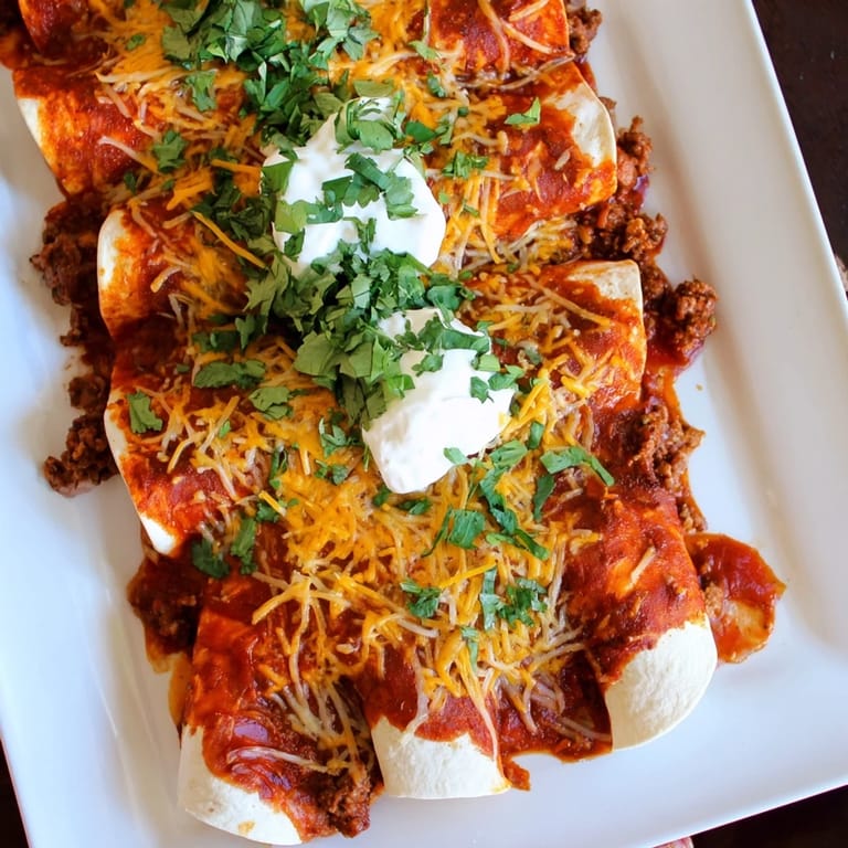 Save My tiny apartment kitchen smelled incredible when I first made these enchiladas, the spices hitting the warm air as the beef browned. I'd been craving something cozy and comforting on a rainy Tuesday, and this recipe delivered exactly what I needed. Now it's the dish I turn to when friends come over, because there's something universally satisfying about tortillas rolled up with seasoned beef and melted cheese.