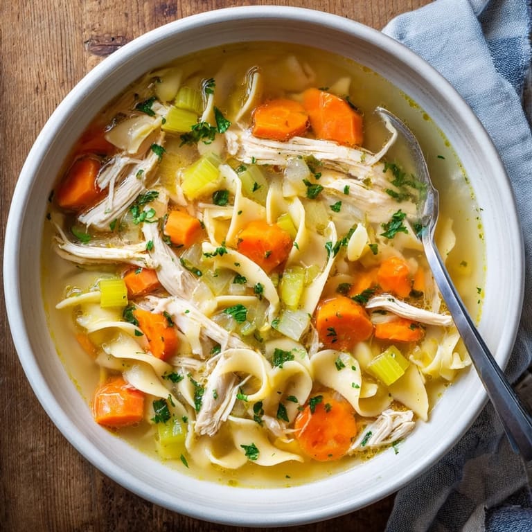 Simply substitute the egg noodles with your favorite gluten-free pasta variety. Brown rice noodles or quinoa pasta work particularly well and maintain their texture nicely in the hot broth.