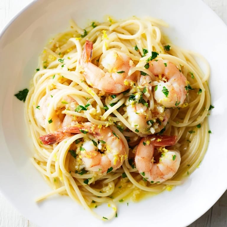 Save My neighbor knocked on the door one Tuesday evening holding a bag of shrimp from the market, asking if I knew what to do with them before they went bad. I threw together this pasta with what I had in the fridge, and we ended up sitting on the porch eating straight from the skillet. The lemon cut through the butter in a way that made us both go quiet for a minute. Sometimes the best meals happen when you're not trying too hard.