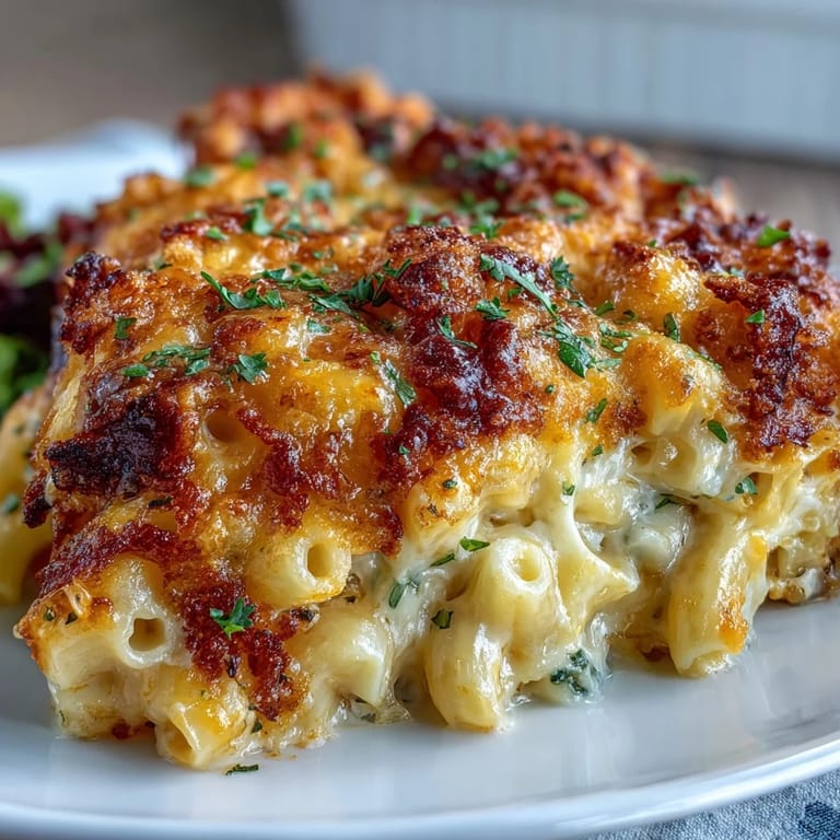 Southern Soul Food Oven-Baked Mac and Cheese shines as both a satisfying main dish and a beloved side. Serve it alongside barbecued ribs, fried chicken, or grilled meats for a true Southern feast. It pairs beautifully with fresh collard greens, green beans, or a crisp garden salad to balance the richness. For holiday gatherings, this mac and cheese holds its own on the table next to turkey, ham, or roast beef. Let the dish rest for about 10 minutes after baking—this allows the sauce to set slightly, making it easier to serve in neat portions. Leftovers reheat wonderfully in the oven or microwave, maintaining that creamy, cheesy goodness for next-day comfort.